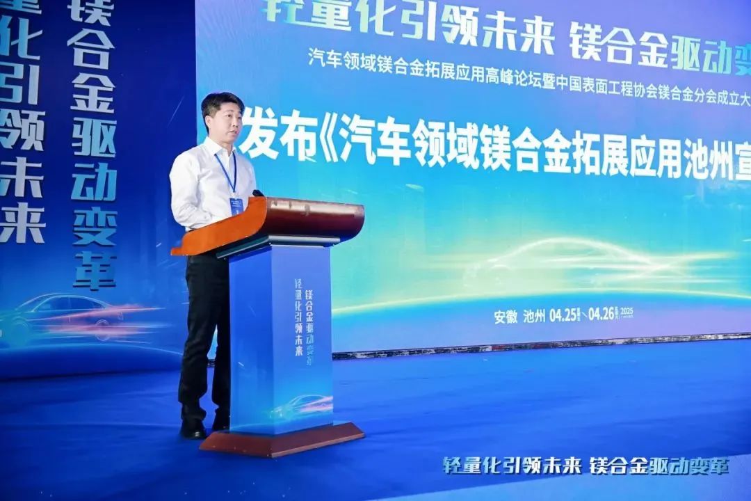 中國表面工程協會汽車分會副理事長倪雷先生在大會上重磅發布了《汽車領域鎂合金拓展應用池州宣言》。這份宣言不僅是一份行業倡議,更是鎂合金產業未來發展的行動綱領。倪雷指出,宣言的制定凝聚了產學研各界的智慧結晶,旨在破解當前鎂合金在汽車應用中的"三難"問題:技術突破難、成本控制難、市場推廣難。他特別提到,池州作為宣言發布地,將率先建設鎂合金應用示范基地,打造從原材料到終端產品的完整產業鏈。這份宣言標志著我國鎂合金產業進入協同創新、集群發展的新階段。
